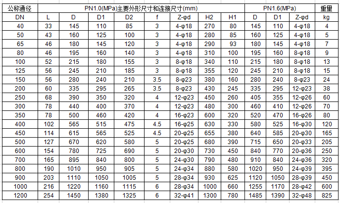 D371對夾式蝶閥尺寸及重量